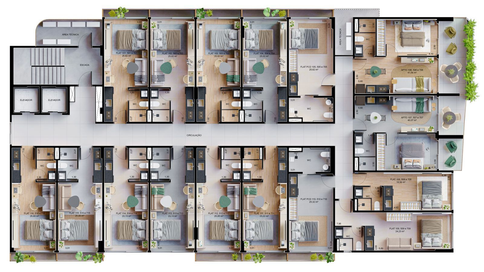 Apartamento tipo Flat com 01 quarto, sala, WC social, cozinha c/área serviço e 01 vaga de garagem rotativa.